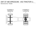 Tyre size: 315/80R22.5 Front axle: Suspension: leaf suspension Rear axle: Double wheels; Suspension: air suspension Empty weight: 7.749 kg Carrying capacity: 12.751 kg