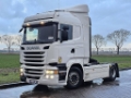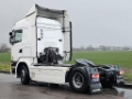 Number of axles: 2, Configuration: 4x2, Own weight: 8166 kg, Gross vehicle weight: 20500 kg, Total fuel capacity: 1100 litre, 2nd fueltank, Fifth wheel height: 122 cm, fifth-wheel: Fixed, Suspension type: air suspension, Cabin type: Highline, Cruise control, Tacho, Digital tachograph, Airconditioning, Parking heater, Electric windows, Electric mirrors, Radio/cassette, GPS navigation, Color: white, Heated mirrors, Lighting type: Halogen lamps, Laneassist, Climatecontrol, Seat heating, Bluetooth, Engine capacity: 302 Kw (405 Hp), Fuel type: diesel, Euro: 6, Gearbox kind: Opti-cruise, Gearbox make: Scania, Number of Gears: 12, Add. break system, Retarder make: Scania, Power steering, ABS, ASR, Starter battery, Central locking, Seats configuration: 1+1, Seat cover: cloth, Chair adjustment: Manually