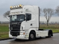 Number of axles: 2, Configuration: 4x2, Total fuel capacity: 700 litre, Fifth wheel height: 115 cm, fifth-wheel: Fixed, Diff. locks: 1, Suspension type: air suspension, Cabin type: Topline, Cruise control, Tacho, Digital tachograph, Airconditioning, Parking heater, Electric windows, Electric mirrors, Radio/cassette, Color: white, Heated mirrors, Lighting type: Halogen lamps, Climatecontrol, Seat heating, Bluetooth, Flashing lights, Fuel type: diesel, Euro: 5, Gearbox kind: Opti-cruise, Gearbox make: Scania, Number of Gears: 12, Add. break system, Retarder make: Scania, Power steering, ABS, ASR, Hydraulic installation, PTO, PTO type: 1, Starter battery, Pump, Central locking, Seats configuration: 1+1, Seat cover: leather, Chair adjustment: Manually