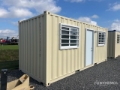 Man Door, Two Windows, 20 ft x 8 ft Skid-Mounted Mobile Office, 20' x 8', 8' 6" High, (1) Swing-Out Door, (2) Windows w/Security Bars, Fork Pockets, Laminate Flooring, SunScreen, R13 Insulation, (1) Pioneer HVAC Mini-Split, (1) Electric Panel, LED Ceiling Lights, Interior Outlets, Wiring done to National Electric Code (NEC)