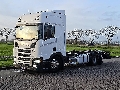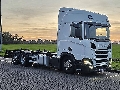 Number of axles: 3, Configuration: 6x2, Own weight: 10420 kg, Gross vehicle weight: 26000 kg, Total fuel capacity: 1100 litre, 2nd fueltank, Trailer coupling, Kingpin size: 40 DIN, fifth-wheel: Fixed, Diff. locks: 1, Suspension type: air suspension, Cabin type: Highline, Cruise control, Tacho, Digital tachograph, Airconditioning, Parking Airco, Parking heater, Electric windows, Electric mirrors, Radio/cassette, Color: white, Heated mirrors, Lighting type: Led lamps, Laneassist, Climatecontrol, Seat heating, Bluetooth, Engine capacity: 331 Kw (444 Hp), Fuel type: diesel, Euro: 6, Gearbox kind: Opti-cruise, Gearbox make: Scania, Number of Gears: 12, Add. break system, Retarder make: Scania, Power steering, ABS, ASR, Starter battery, Matr. year superstructure: 2020, Twistlocks: 1x20, Systemlength: 80 cm, Central locking, Seats configuration: 1+1, Seat cover: cloth, Chair adjustment: Manually = More information = Axle configuration Tyre size: 315/80R22,5 Axle 1: Steering; Tyre profile left: 9 mm; Tyre profile right: 7 mm Axle 2: Double wheels; Tyre profile left inner: 14 mm; Tyre profile left outer: 14 mm; Tyre profile right outer: 14 mm; Tyre profile right outer: 15 mm Axle 3: Steering; Tyre profile left: 7 mm; Tyre profile right: 18 mm Weights Empty weight: 10.420 kg Functional Height of cargo floor: 130 cm Maintenance APK (MOT): tested until 08/2026 Condition Technical condition: good Visual appearance: good Damages: none Number of keys: 1 Financial information Lease price: €819 p/m (default, 60 months); ask for more information and conditions = Dealer information = https://www.kleyntrucks.com Why buy at Kleyn Trucks? The choice is easy: 1,200 used trucks, tractor units, semi-trailers, trailers and more. All in one location, with a choice from all brands. You can get a one year warranty package for all our trucks with a mileage up until 700.000 kilometers and 7 year age, including service maintenance. In our free consultation, we look with you for the financing deal which suits your needs best. • Sharp prices • Good service • Fast changing, big stock! • Always sure about the quality! • 100+ years of Trading expertise you can trust! • Professional technical service • Delivery to your doorstep possible • Professional technical service Visit our website at: www.kleyntrucks.com and check out our complete stock. Leasing possible
