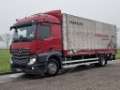Number of axles: 2, Configuration: 4x2, Own weight: 9730 kg, Gross vehicle weight: 20500 kg, Total fuel capacity: 500 litre, fifth-wheel: Fixed, Diff. locks: 1, Cabin type: High roof, Cruise control, Tacho, Digital tachograph, Number of airbags: 1, Parking Airco, Parking heater, Electric windows, Electric mirrors, Radio/cassette, Carplay, GPS navigation, Color: Red, Heated mirrors, Mirror camera, Reversing camera, Lighting type: Xenon lamps, Speed limiter, Laneassist, Climatecontrol, Seat heating, Bluetooth, Blind spot sensor, Engine capacity: 265 Kw (355 Hp), Fuel type: diesel, Euro: 6, Gearbox kind: Telligent, Gearbox make: Mercedes Benz, Speed limiter, Number of Gears: 12, Add. break system, Retarder make: Voith, Power steering, ABS, ASR, Starter battery, Central locking, Seats configuration: 1+1, Seat cover: cloth, Chair adjustment: Manually, Taillift, Tail-lift kind: normal, Tail-lift capacity: 1500 kg, Tail-lift make: Bar Cargo, Tail-lift material: aluminium, Tail-lift size: 211 x 252