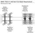 Rear axle 1: Tyre size: 13R 22.5; Double wheels; Max. axle load: 9500 kg; Tyre profile left inner: 50%; Tyre profile left outer: 50%; Tyre profile right outer: 50%; Tyre profile right outer: 50%; Reduction: hub reduction