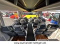 Standheizung, Holzfußbodenoptik, KlimaAnlage, Tische, Vorhänge, Gepäckablagen, Gepäcknetze, Düsenbelüftung, Leselampen, Doppelverglasung, Fußrasten, Küche, Kühlschrank, Kaffeemaschine, Mittel-WC, Kopf-Ledereinsätze, Reiseleitermikrofon, Fahrermikrofon