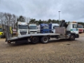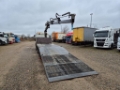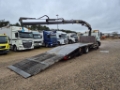 1st reg: 03.08.1998 In good working condition. With crane and big hydraulic ramp Loading area: 712 cm long x 253 cm wide Wheel well: 38 cm deep Ownweight: 11.420 kg totalweight: 25.600 kg Hook: 3.500 kg Tires: 1axle: 14/14 mm (steel suspension) 2axle: 14/16 mm (Air suspension) 3axle: 11/9 mm (air + lift)