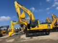 The Komatsu PC350-8 is a high-performance 35-ton heavy-duty hydraulic excavator, ideal for large-scale construction, mining, quarrying and infrastructure projects, renowned for its reliability, fuel efficiency and long service life. Powered by a Komatsu SAA6D114E-3 diesel engine with a rated output of 202 kW at 1800 rpm, it complies with EU Stage IIIA and EPA Tier 3 emission standards, delivering strong torque and stable performance while reducing fuel consumption. Equipped with an advanced electro-hydraulic control system (main pump flow 2×288 l/min, auxiliary hydraulic flow 140 l/min), it features two travel speeds (3.2 km/h low gear, 5.5 km/h high gear) and a swing speed of 9.3 rpm. With an operating weight of approximately 34,800 kg, standard bucket capacity of 1.6 m³ (1.4-1.8 m³ optional), and transport dimensions of 11000×3200×3450 mm for convenient relocation, it is equipped with an ergonomic cab, reinforced boom and arm, and centralized maintenance points to minimize downtime and ensure stable operation in harsh working conditions.