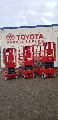 Endkundenbemerkung: Arbeitshöhe 7,8m, Plattformhöhe 5,8m, Gesamtlänge 1,86m, Gesamtbreite 0,76m Gesamthöhe ausgeklapptes Geländer 2,15m, Gesamthöhe eingeklapptes Geländer 1,83m, Plattformlänge 1,67m, Plattformbreite 0,74m, Plattformerweiterung 0,90m, Fahrgeschwindigkeit eingefahren 5 km/h, Fahrgeschwindigkeit ausgefahren 0,8 km/h, Steigfähigkeit 25%, Max. zulässige Neigung 1,5°/3°, Wenderadius aussen 1,64m, Non-Marking-Reifen 323x100 mm, Max. Personenzahl (Innen-/Außenbereich) 2/1, Sonderausstattung: elektrische Radantriebe, klappbares Geländer, abriebfreie Reifen