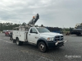 Versalift on 2014 Ram 4500 4x2 Cable Placer Bucket Truck Located in Lane 28 Spot 41, Dodge Cummins 6 Cylinder 6.7 L Diesel Engine, 2014 US EPA Label, Requires Diesel Exhaust Fluid, Exhaust Brake, Automatic Transmission, 7000 lb Front Axle, 12000 lb Rears, 16000 lb GVWR, 225/70R19.5, Spring Suspension, 145 in Wheelbase, Center Mounted, One-Person Telescopic Boom, Utility Body, 12 ft x 96 in Bed, Pintle Hitch