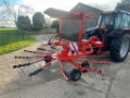 Kuhn GA 4521 GM single rotor rake in good condition. Year 2009, 4.5 metres working width, hydraulic folding curtain, bogie axle, road lights, good tines
